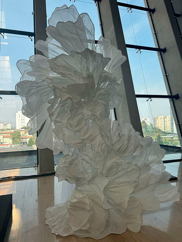 Fabricación de flores gigantes en tela y diseños abstractos en tela. Creando arte para cualquier espacio.
